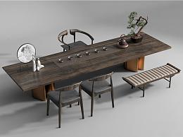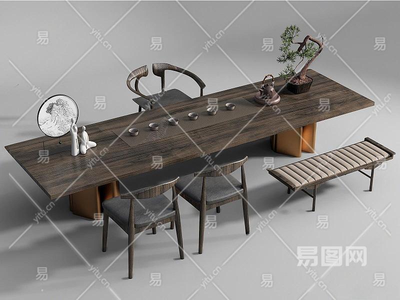 新中式茶桌椅组合 摆件 茶具 休闲椅 凳子