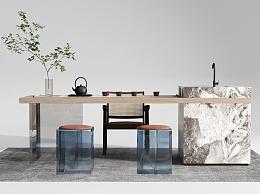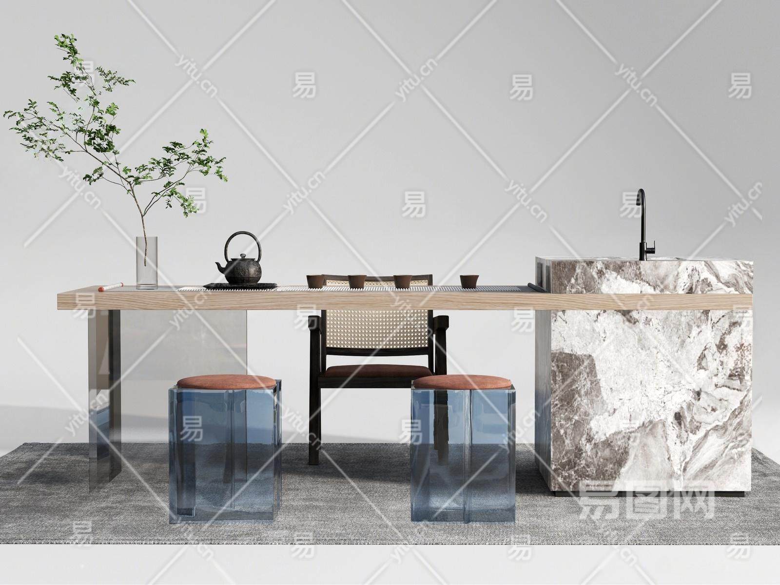 现代茶桌椅组合 凳子 休闲椅 花瓶 摆件
