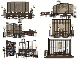 中式屏风 宋代书桌椅组合 木材