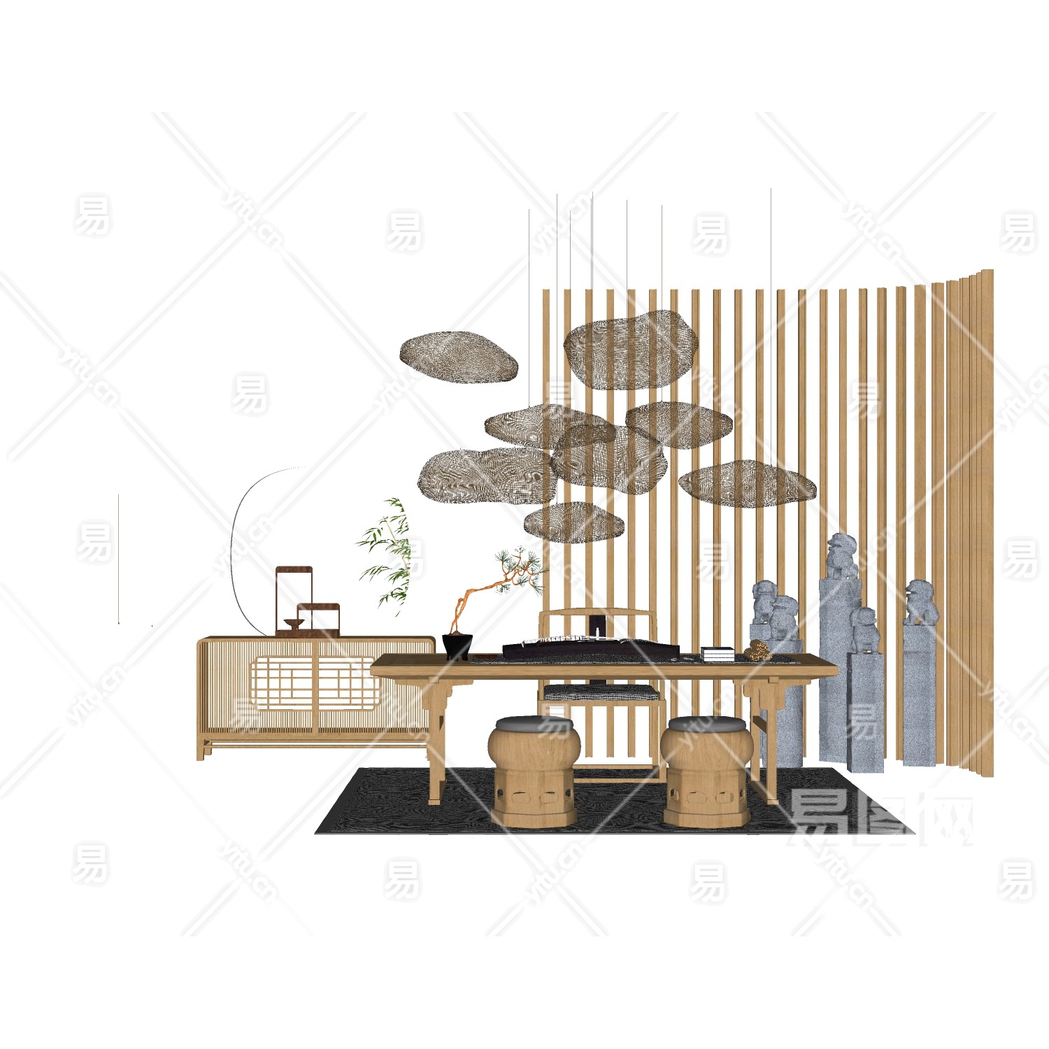 新中式禅意家具su
