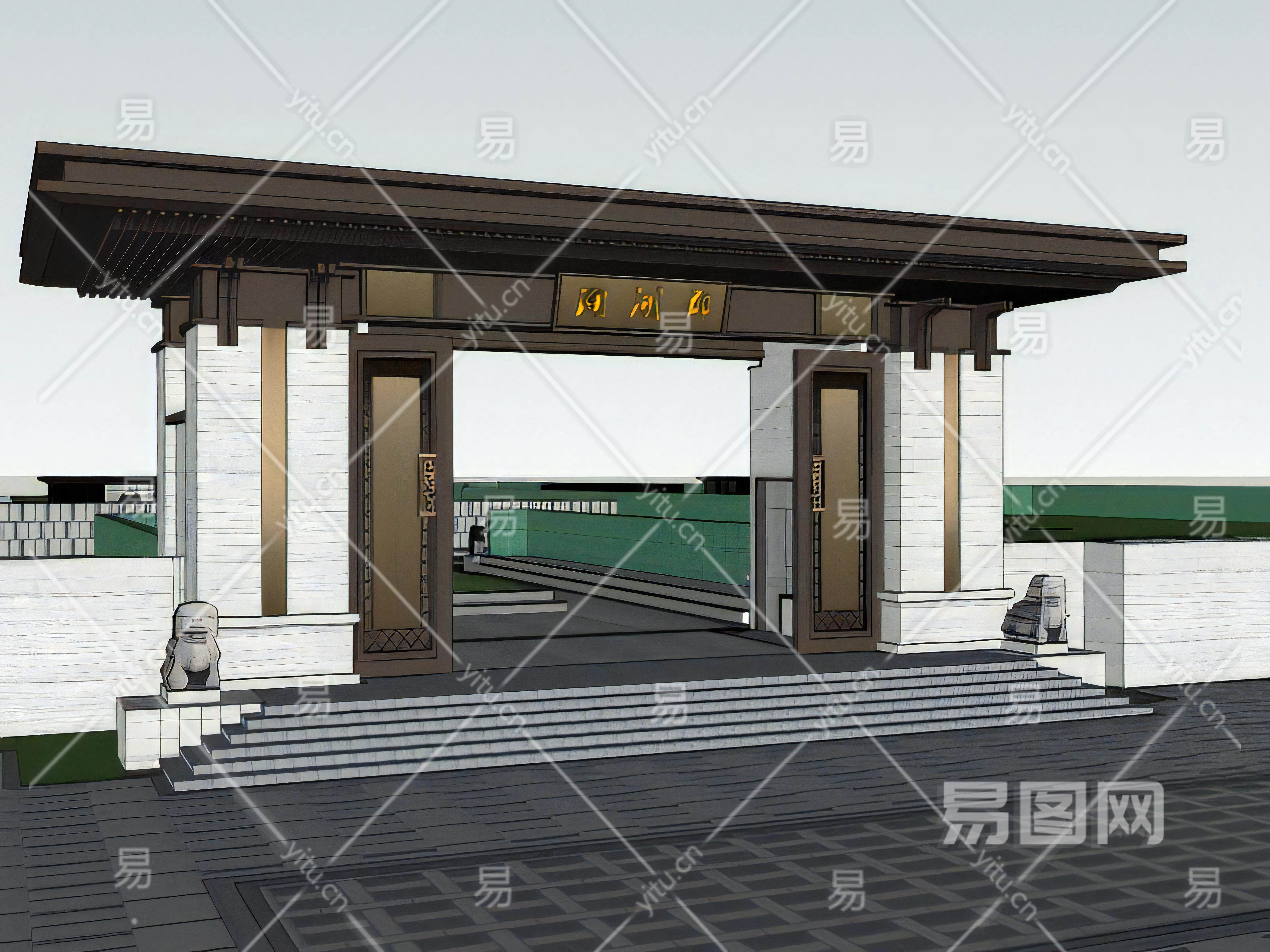 当前的位置:首页 > sketchup > sketchup模型 > 建筑 > 住宅建筑 > 新中式入口大门门楼