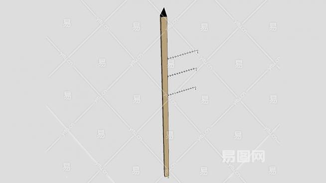 单侧三线混凝土电线杆SU模型下载_sketchup草图大师SKP模型