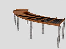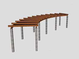 弧形廊道石柱木棚花架SU模型下载_sketchup草图大师SKP模型