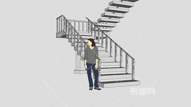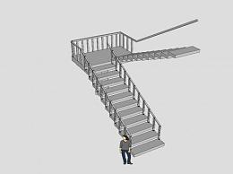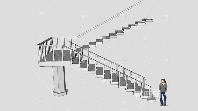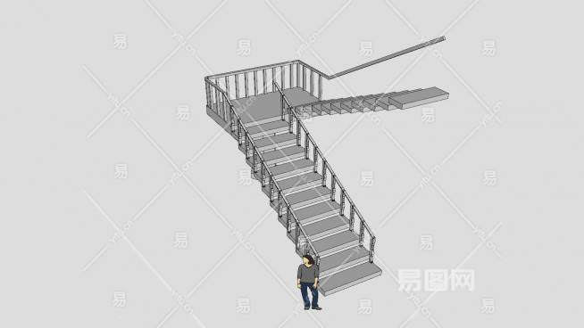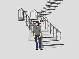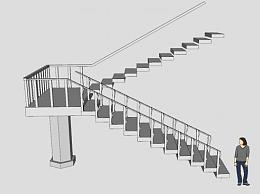 支撑柱双跑楼梯SU模型下载_sketchup草图大师SKP模型