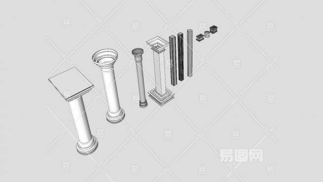 多风格石柱SU模型下载_sketchup草图大师SKP模型