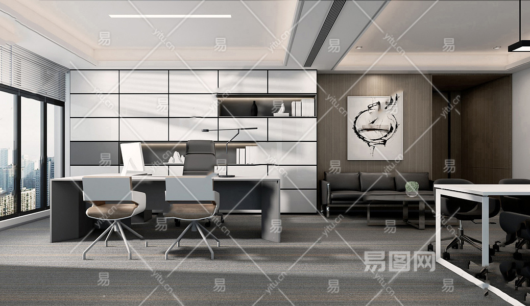 现代经理办公室 领导办公室 办公桌椅组合 沙发茶几组合 摆件