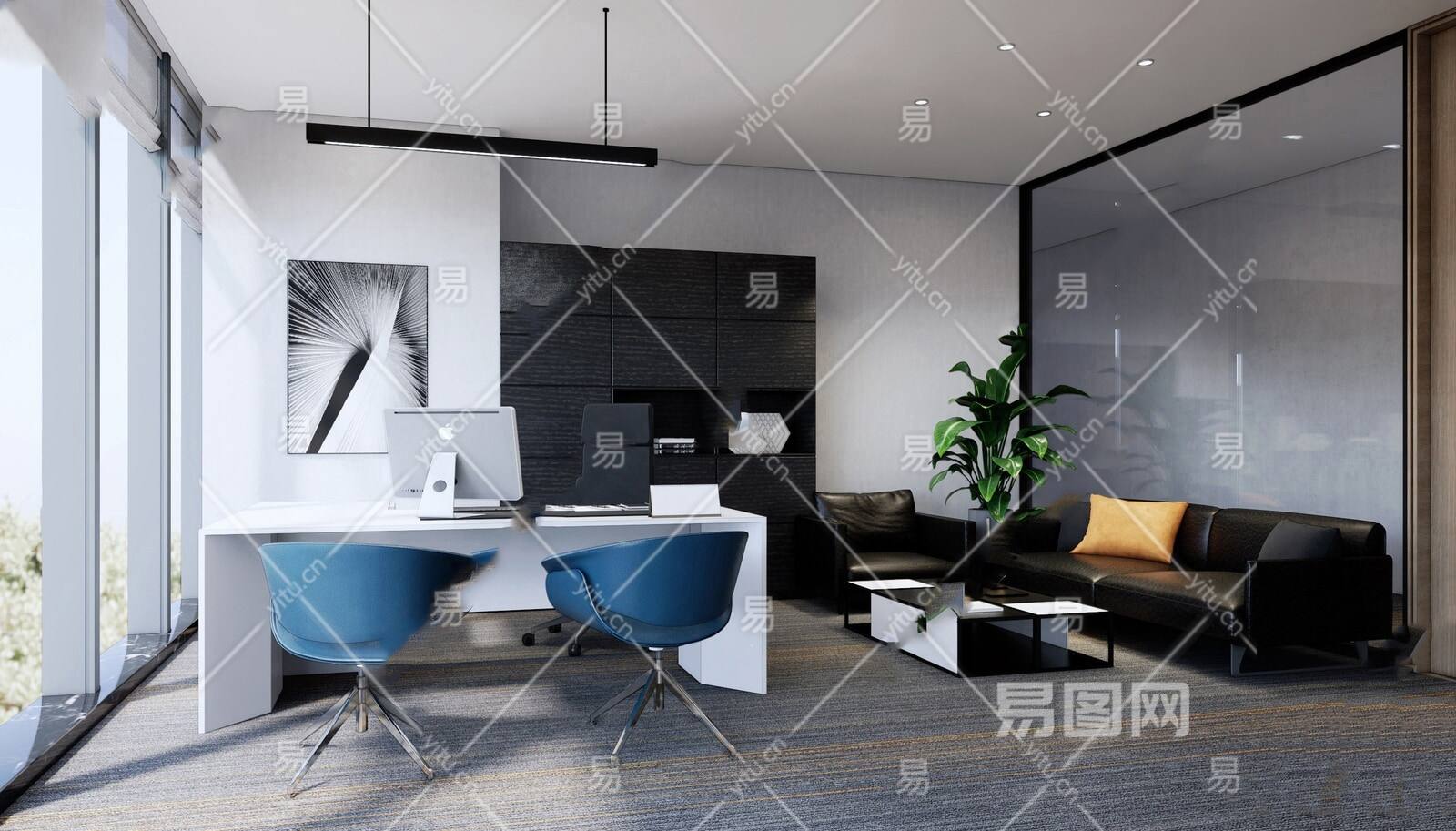 现代风格经理办公室 办公桌椅组合