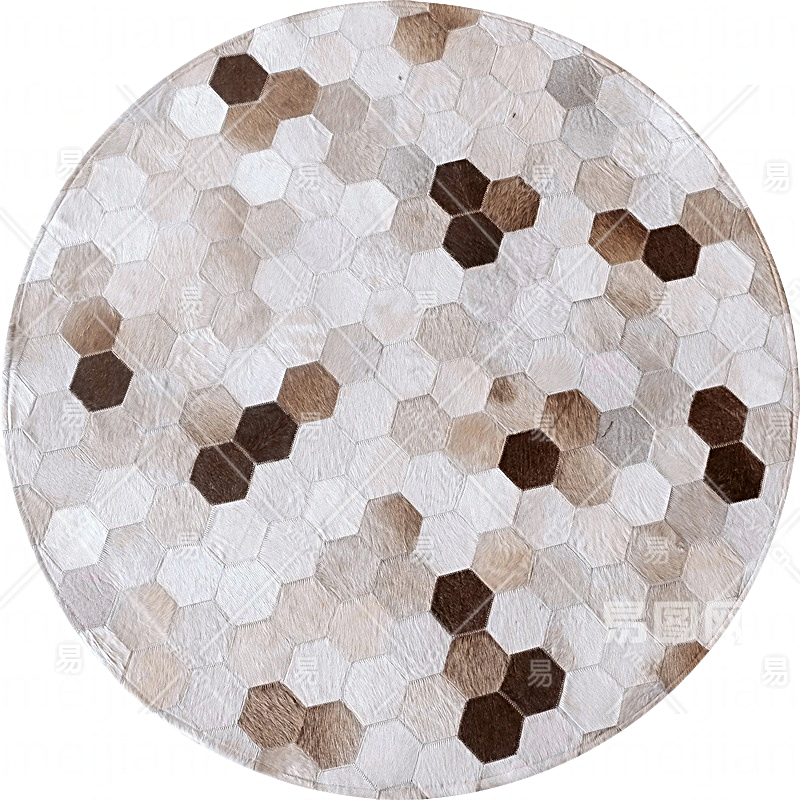 【高清贴图】欧式圆形牛皮地毯手工拼接北欧衣帽间卧室婚房梳镜台床边小地毯