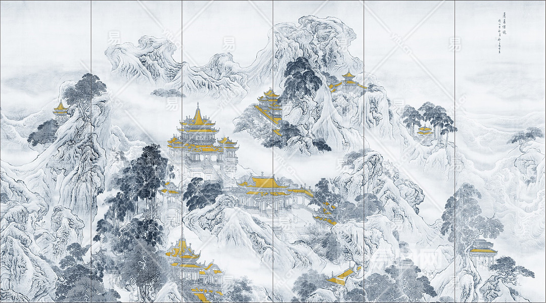 高清中式山水壁画贴图