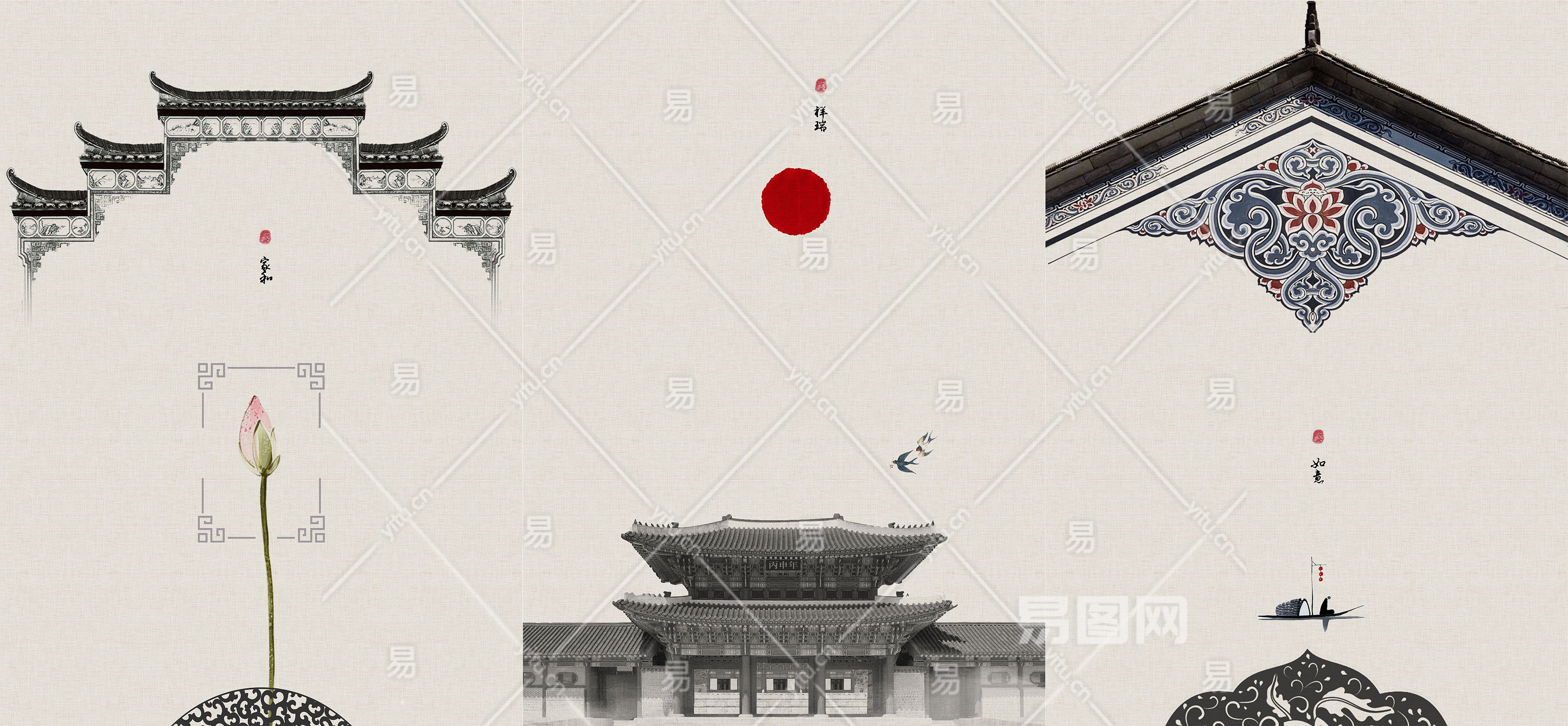 新中式壁画贴图