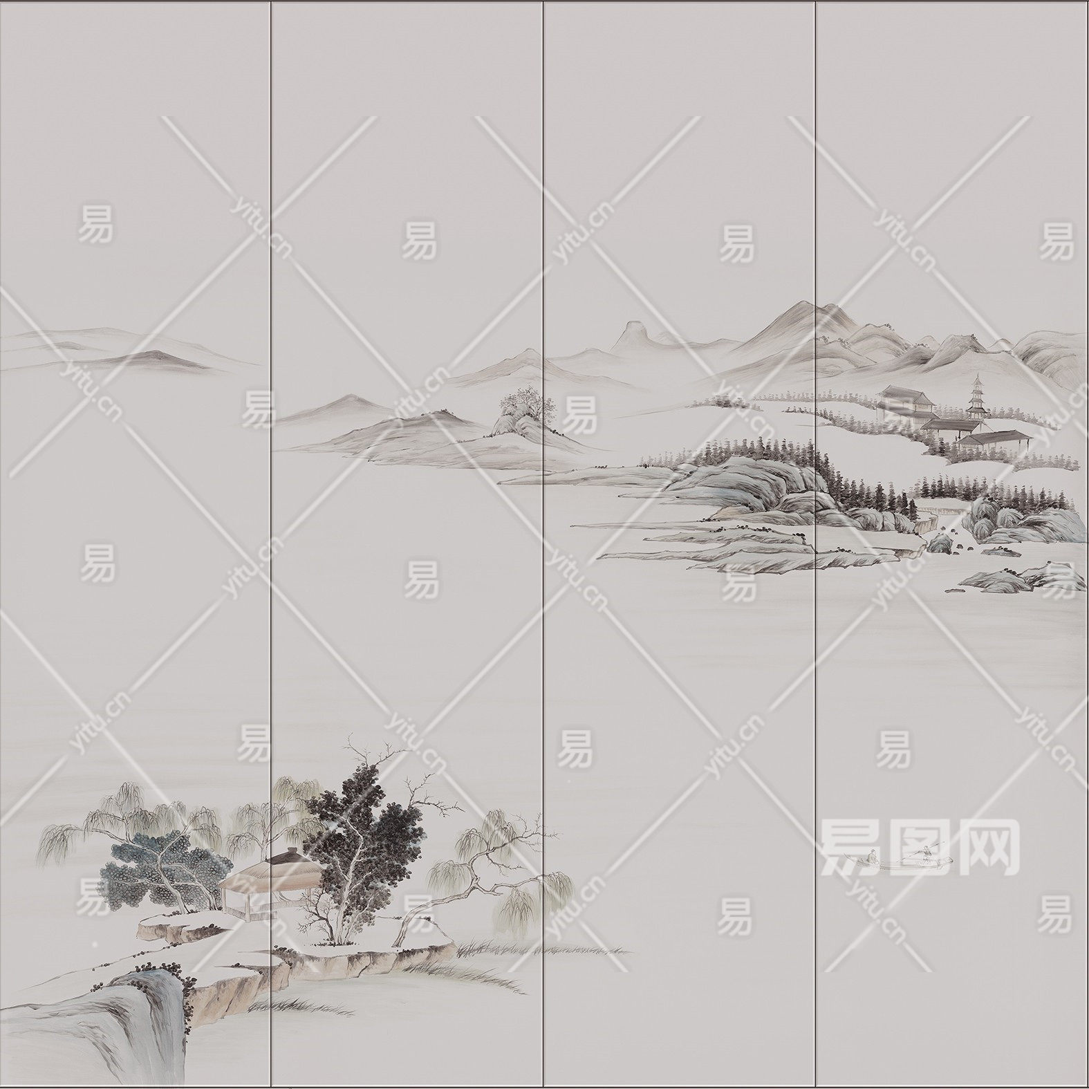 中式山水壁画贴图