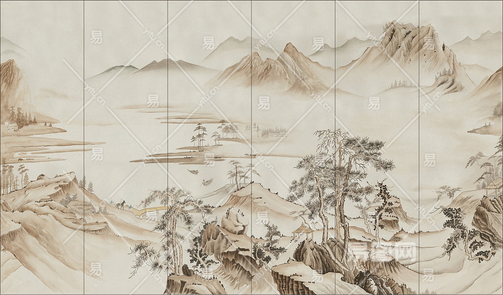 中式山水壁画贴图