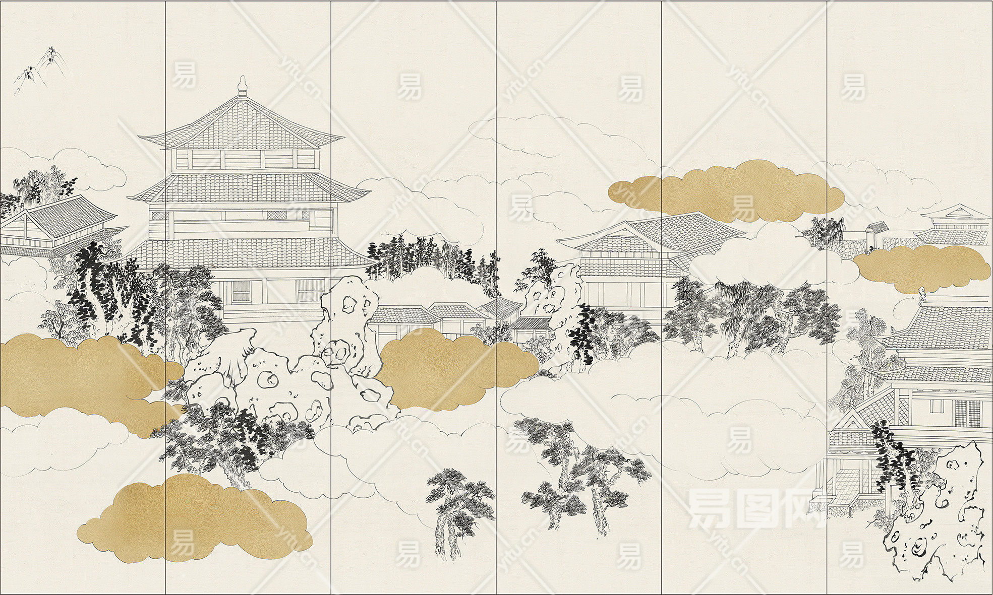 中式山水壁画贴图