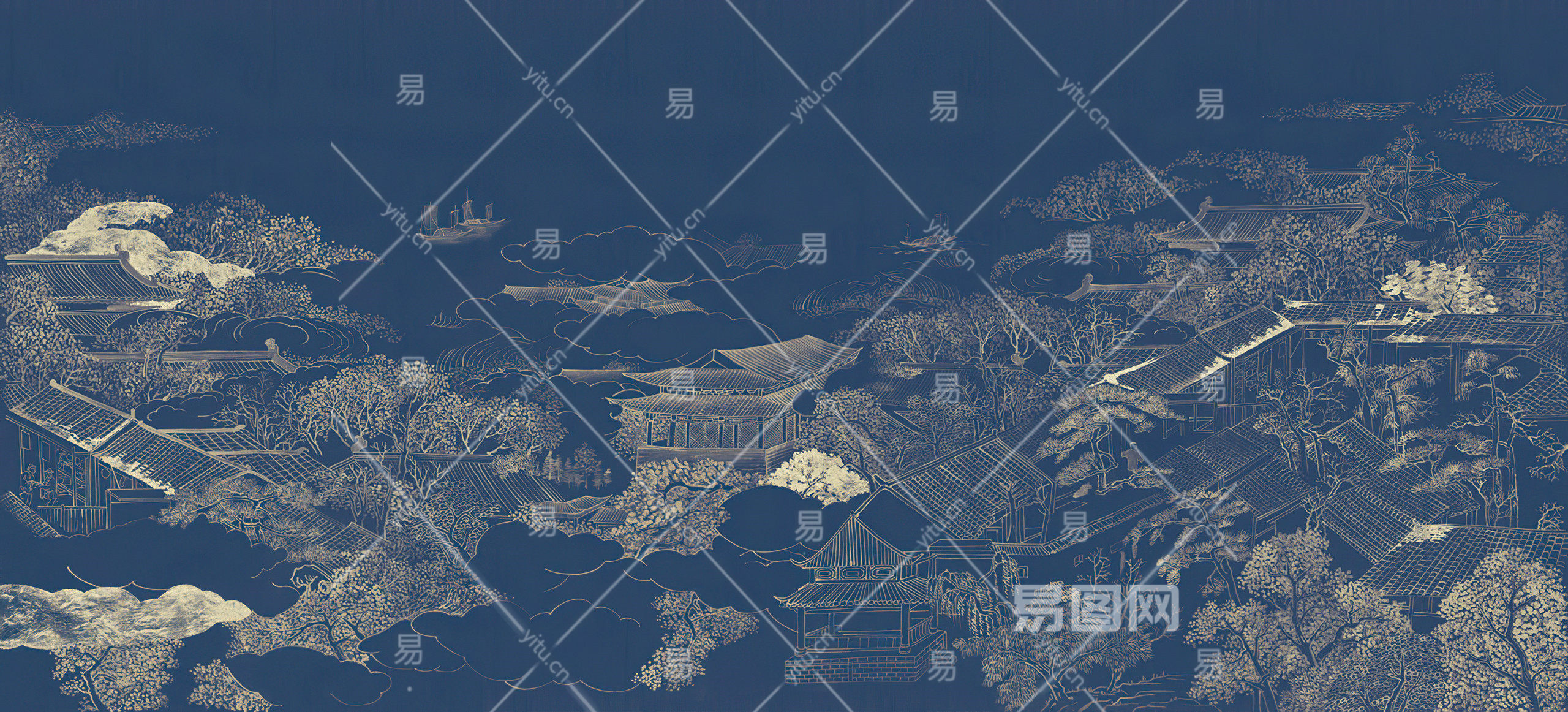 中式山水壁画贴图