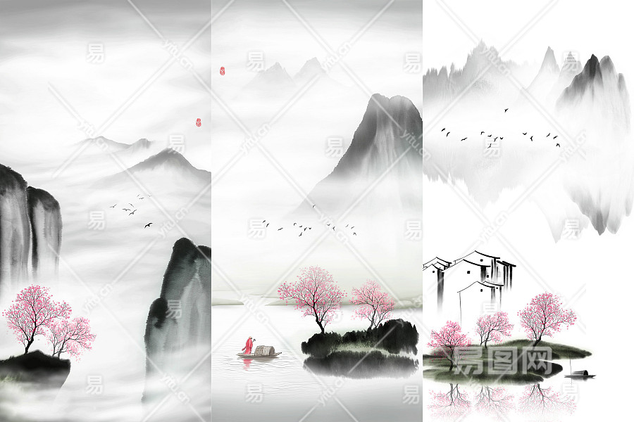 当前的位置:首页 > 贴图 > 装饰画 > 中式装饰画 > 中式山水壁画贴图