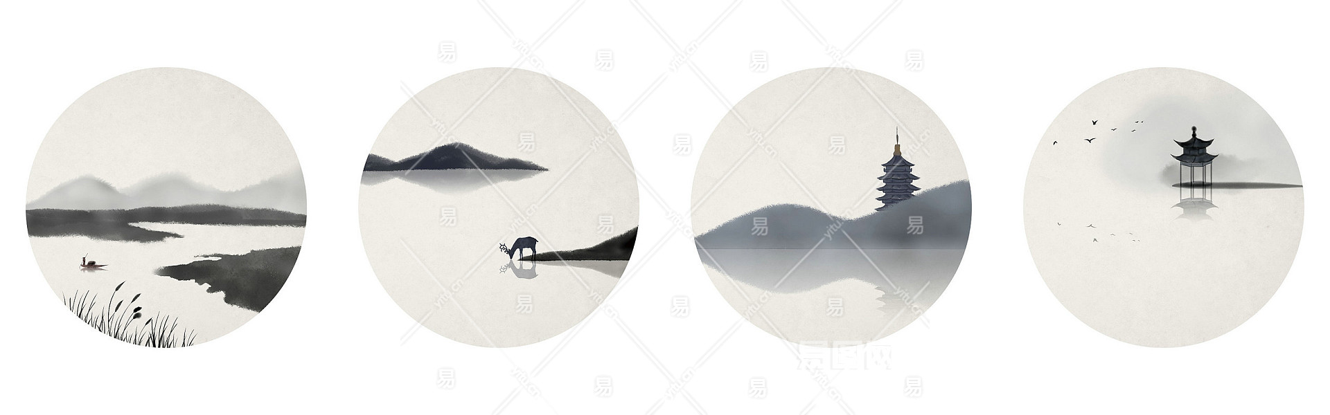 中式山水壁画贴图