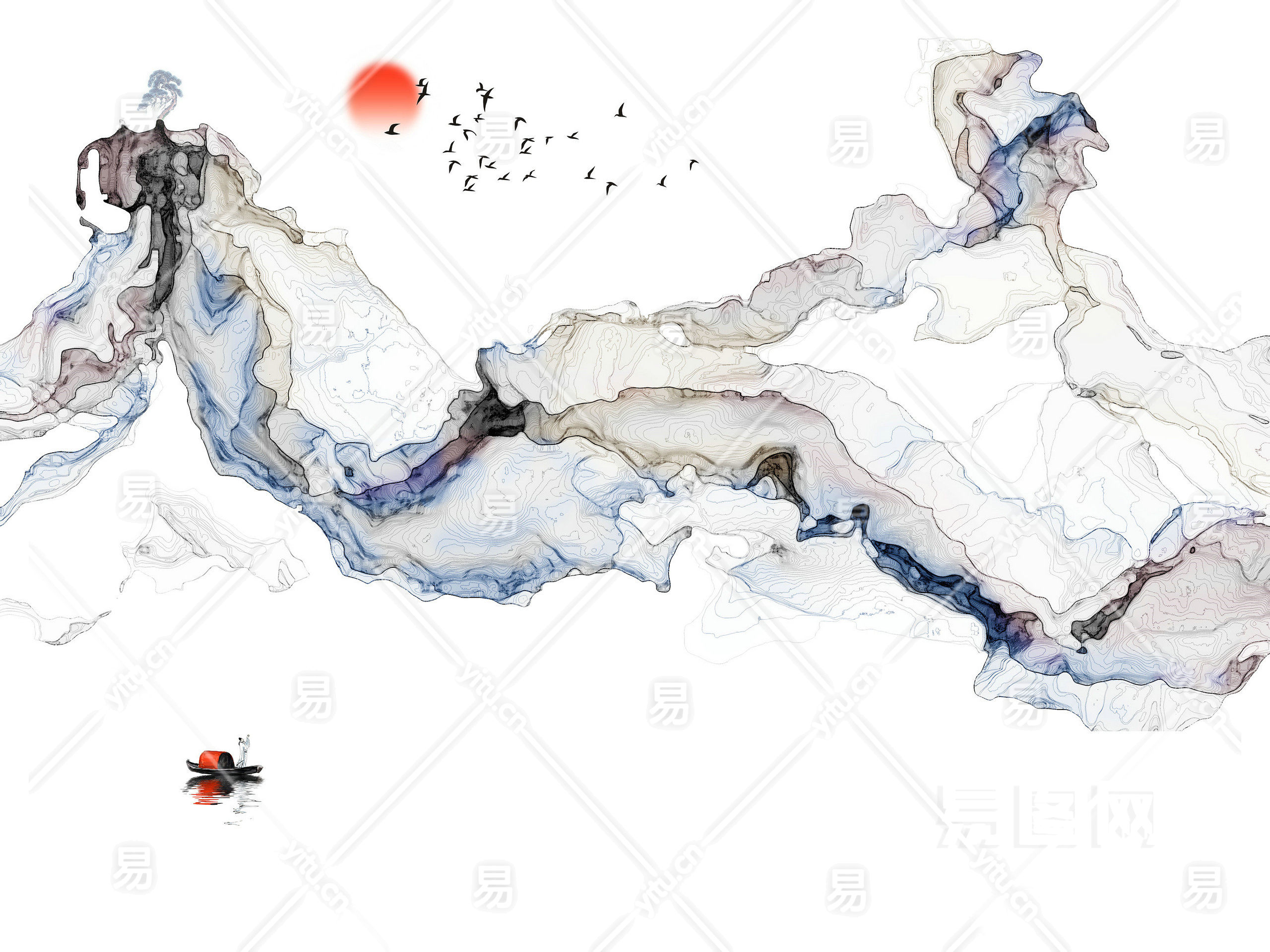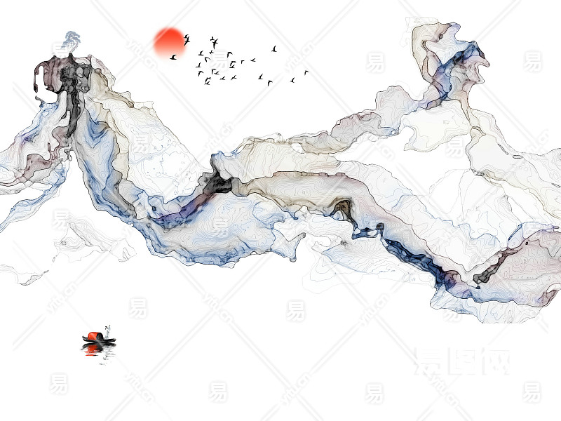 中式山水壁画贴图