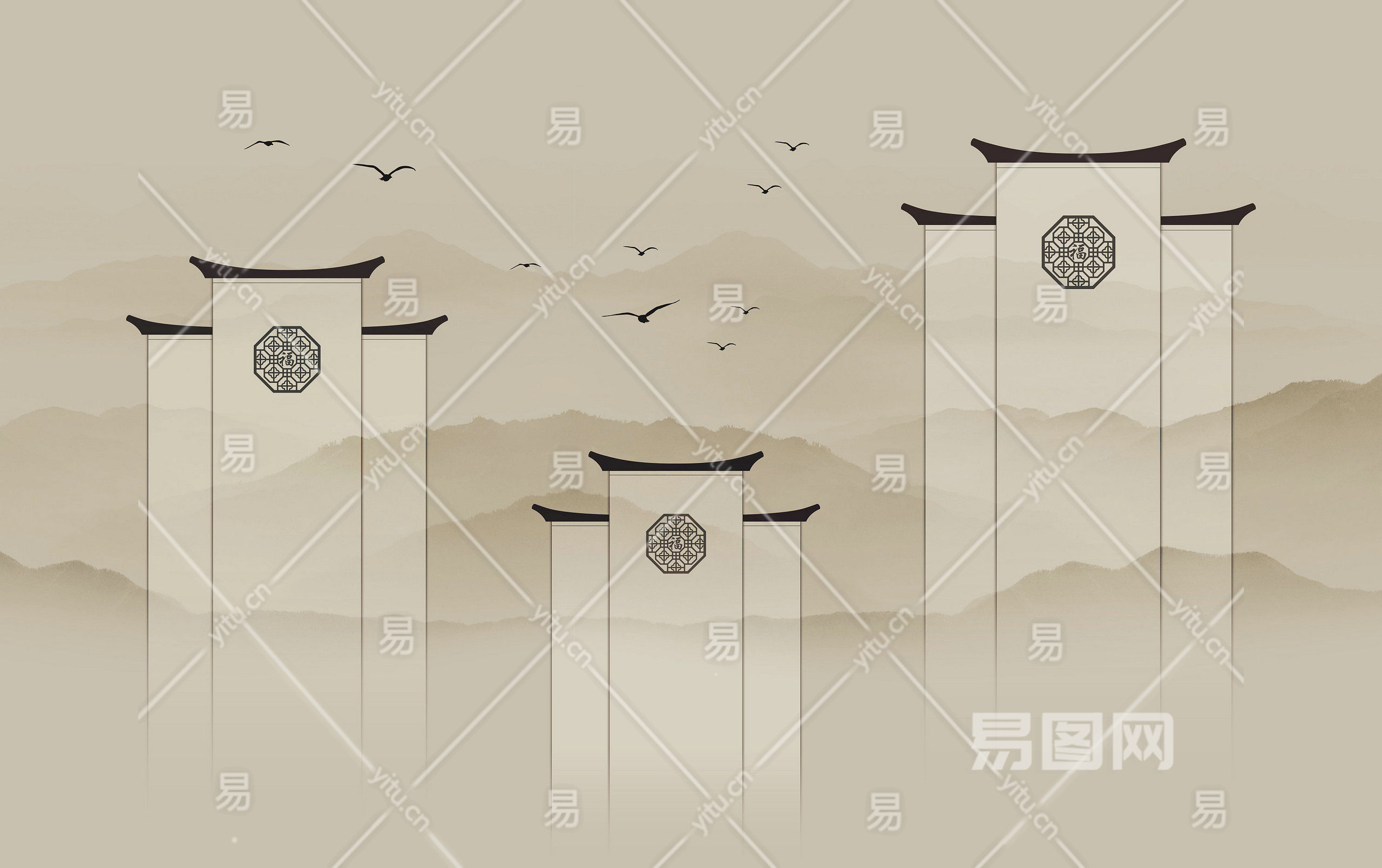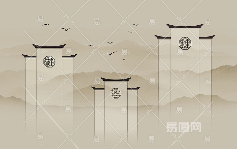 中式山水壁画贴图