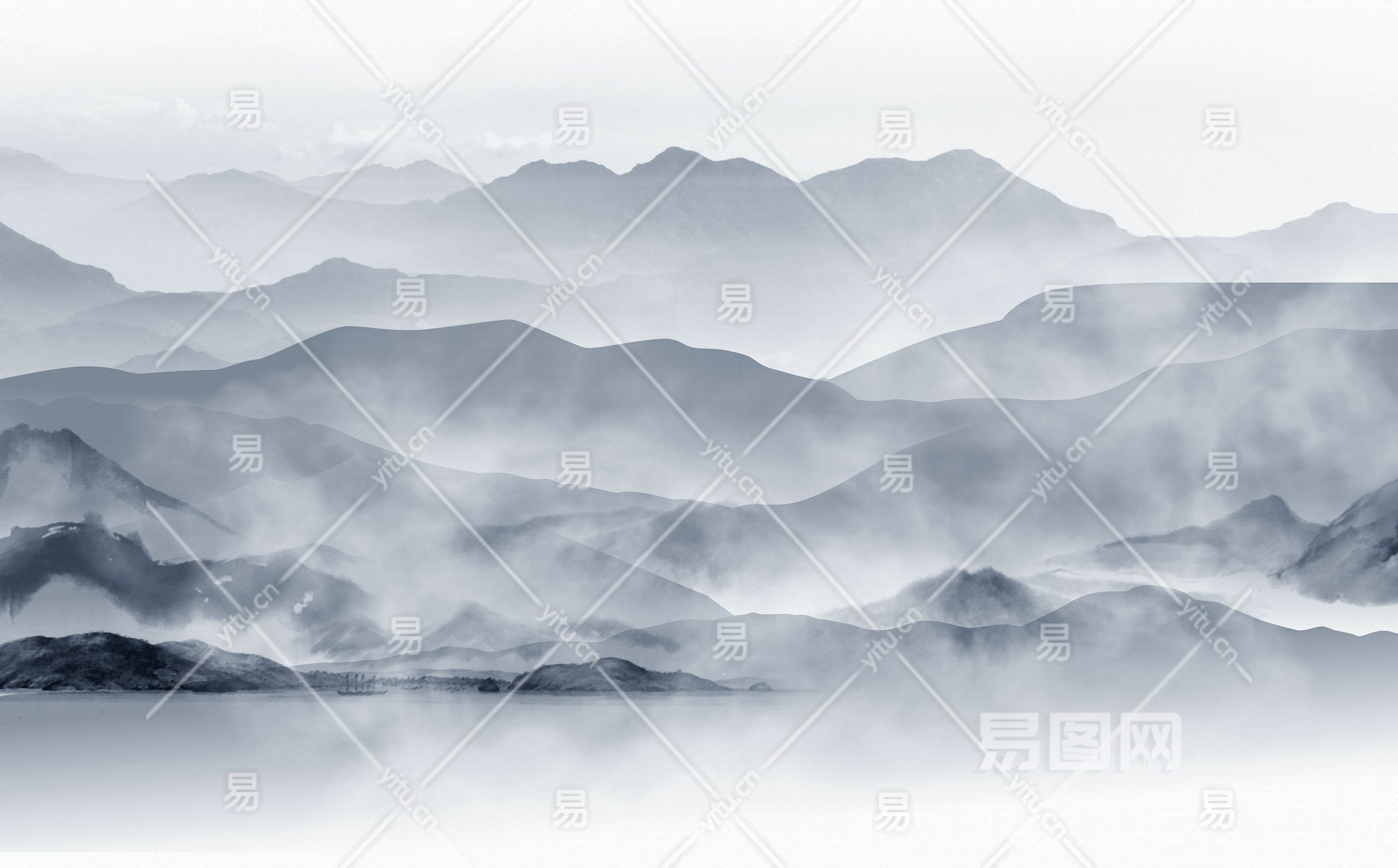 中式山水壁画贴图