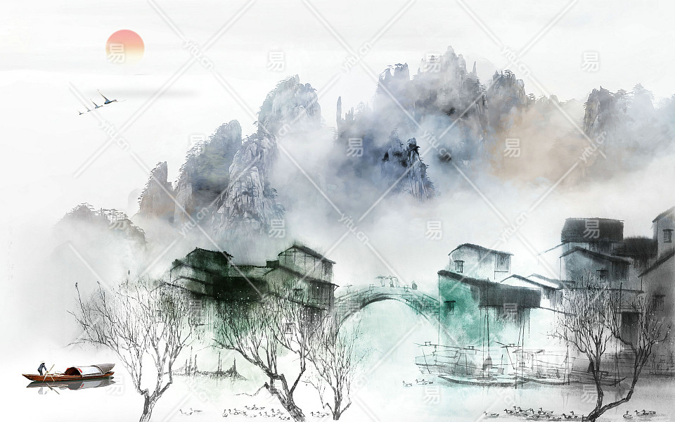 中式山水壁画贴图