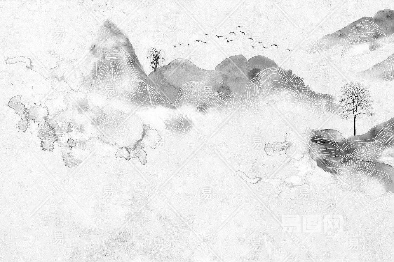 中式山水壁画贴图