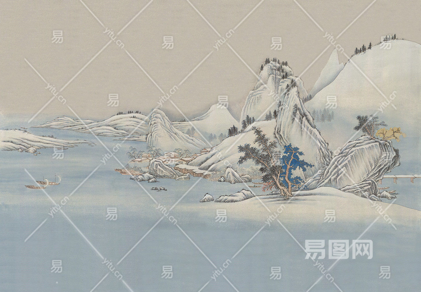 中式山水壁画贴图
