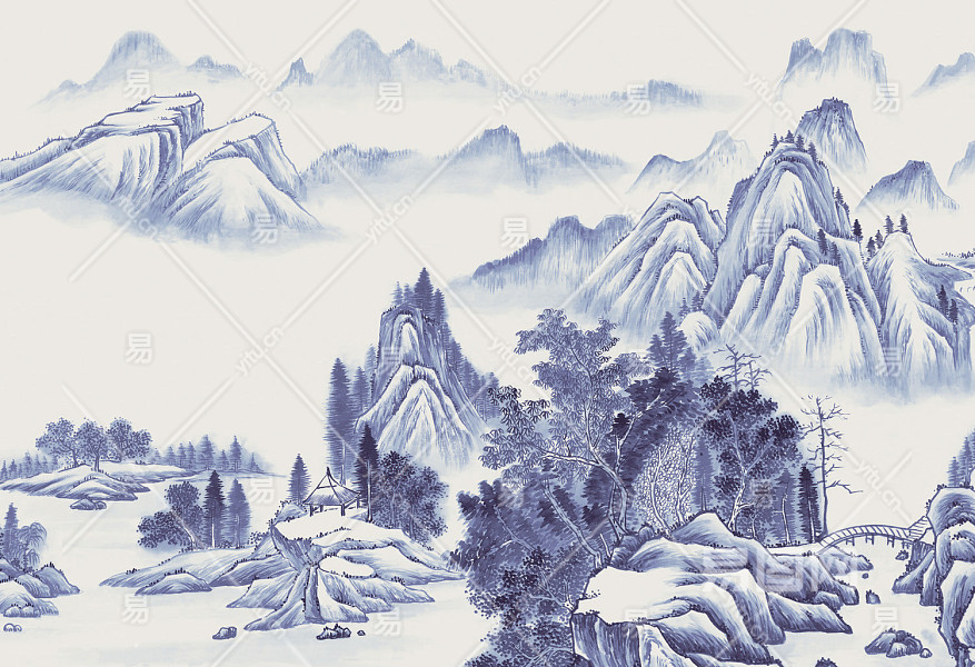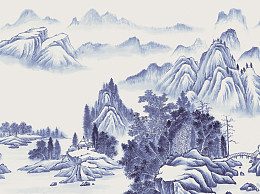 中式山水壁画贴图