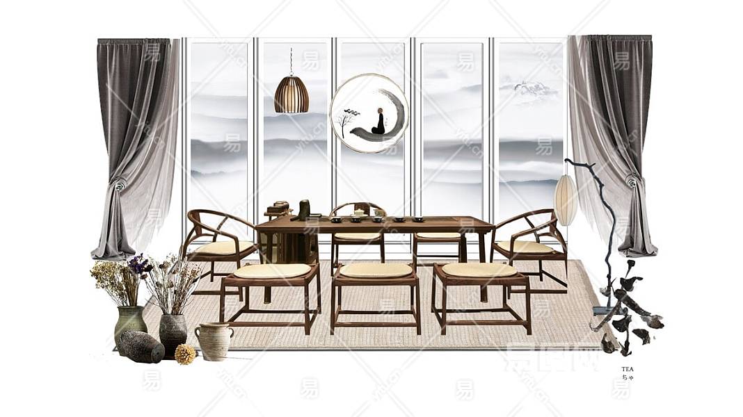 【免扣素材】餐厅软装方案家具