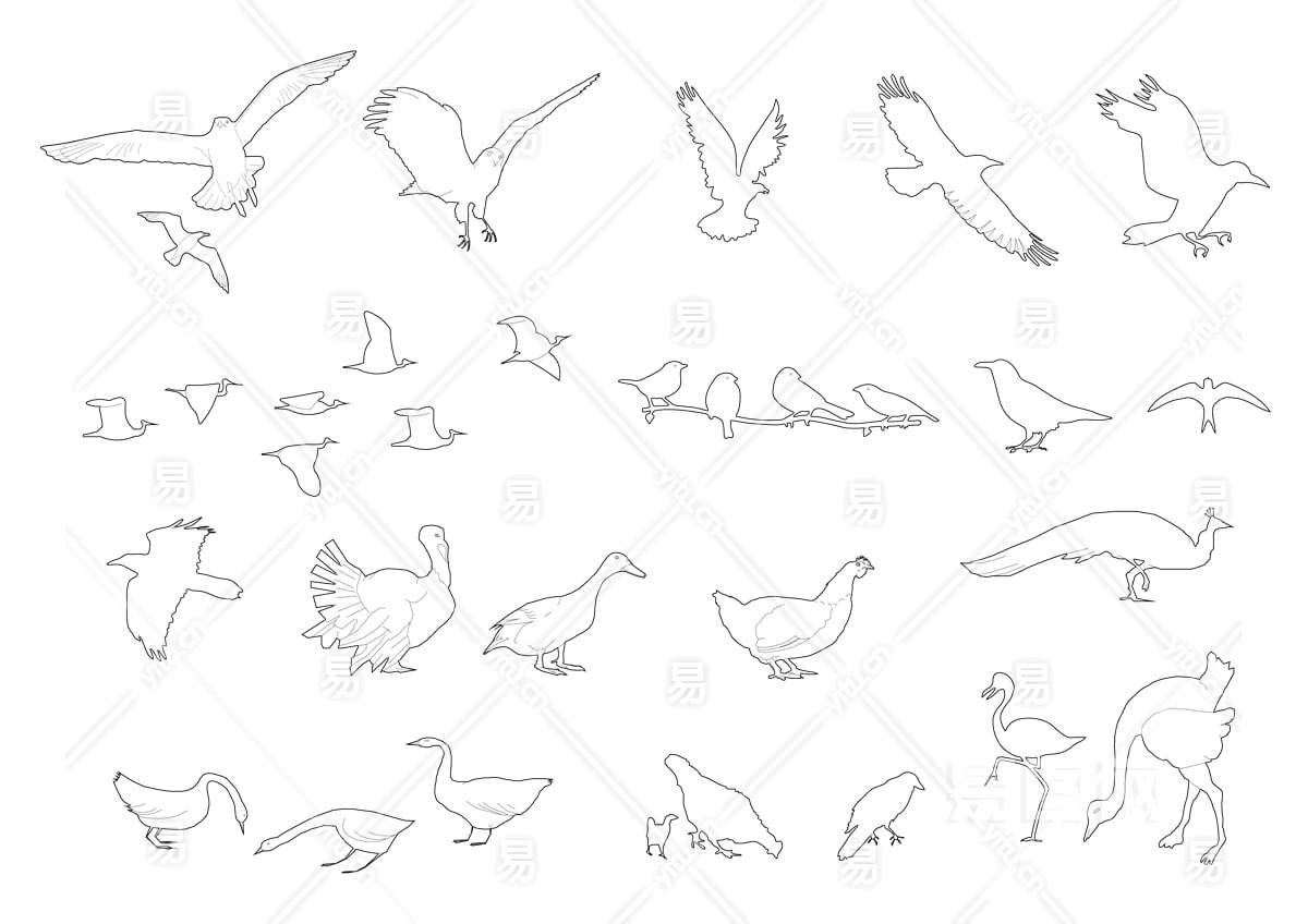【免扣素材】鸟类线稿风素材PSD