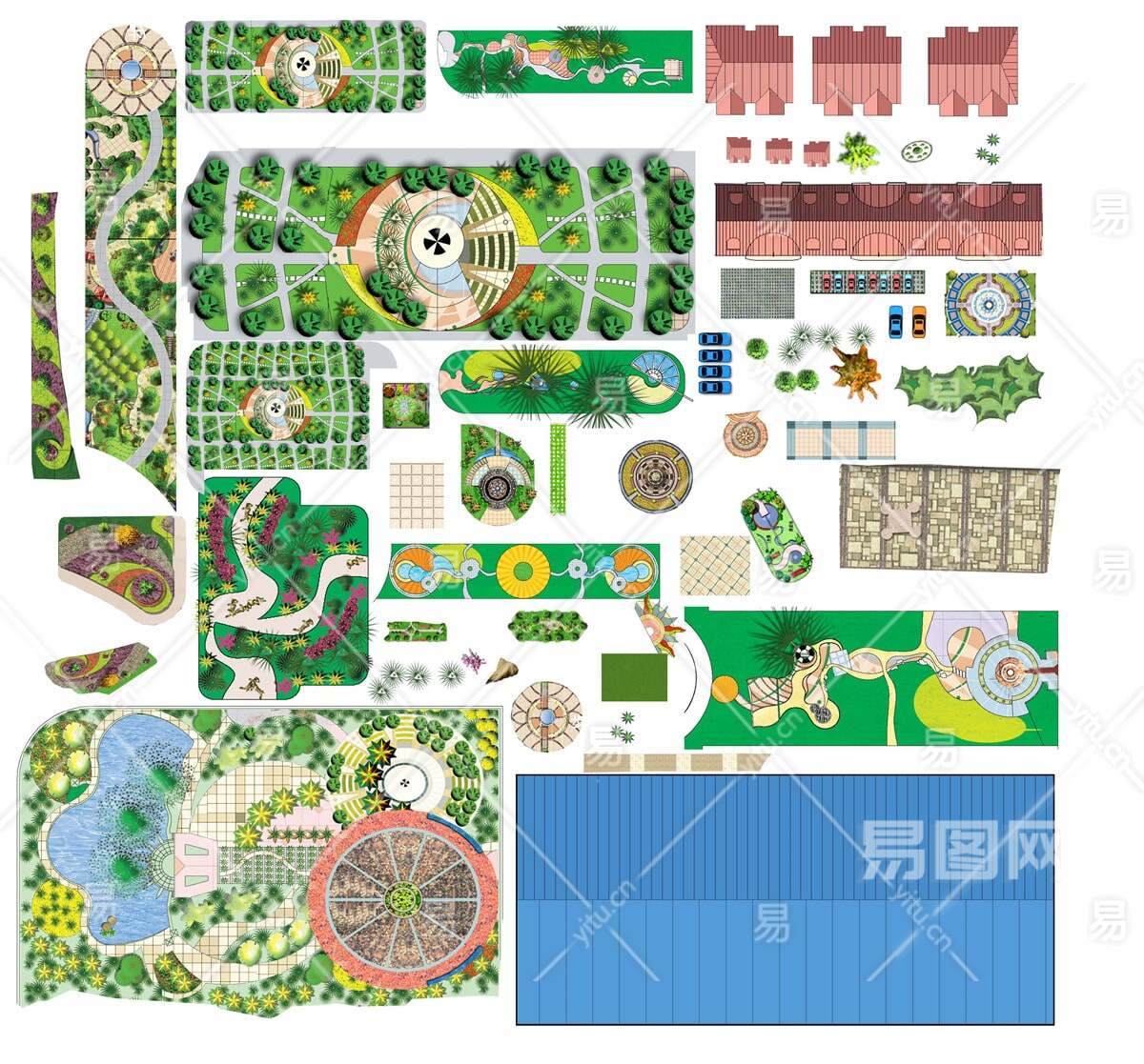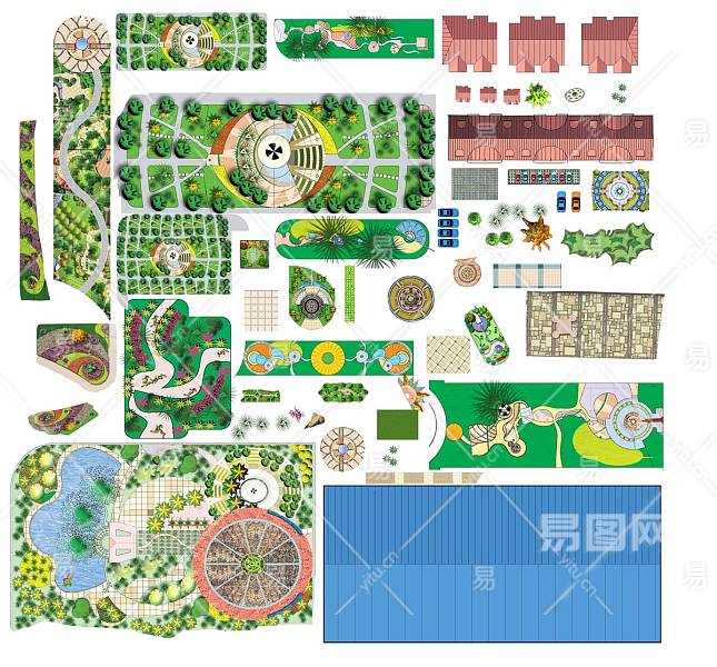 当前的位置:首页 > 贴图 > 免抠素材 > 免抠彩平图 > 【免扣素材】园林景观配景铺装小品PSD彩平素材