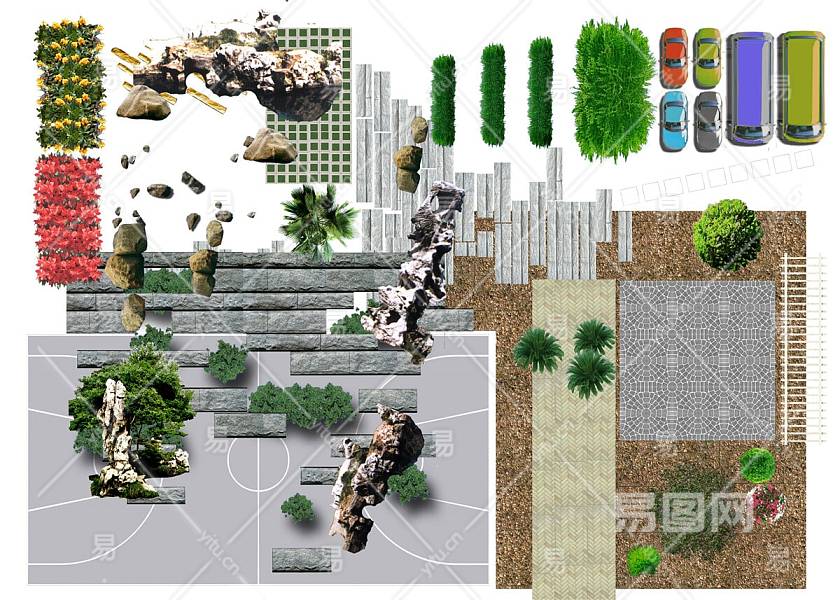 当前的位置:首页 > 贴图 > 免抠素材 > 免抠彩平图 > 【免扣素材】园林景观配景铺装小品PSD彩平素材