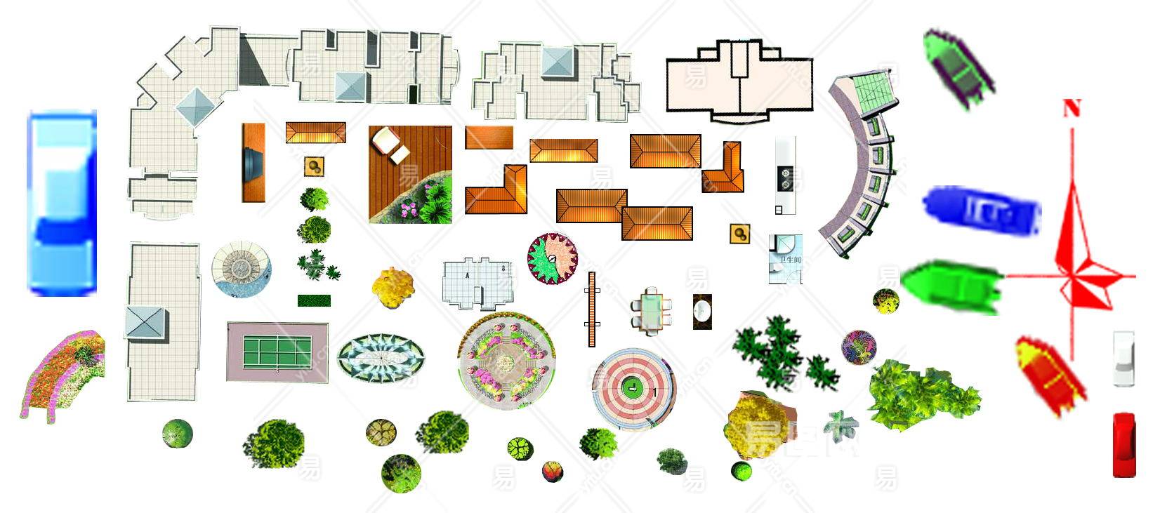 当前的位置:首页 > 贴图 > 免抠素材 > 免抠彩平图 > 【免扣素材】园林景观配景铺装小品PSD彩平素材