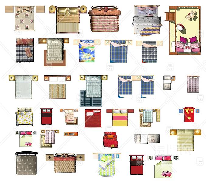 当前的位置:首页 > 贴图 > 免抠素材 > 免抠彩平图 > 【免扣素材】室内平面床家具PSD彩平