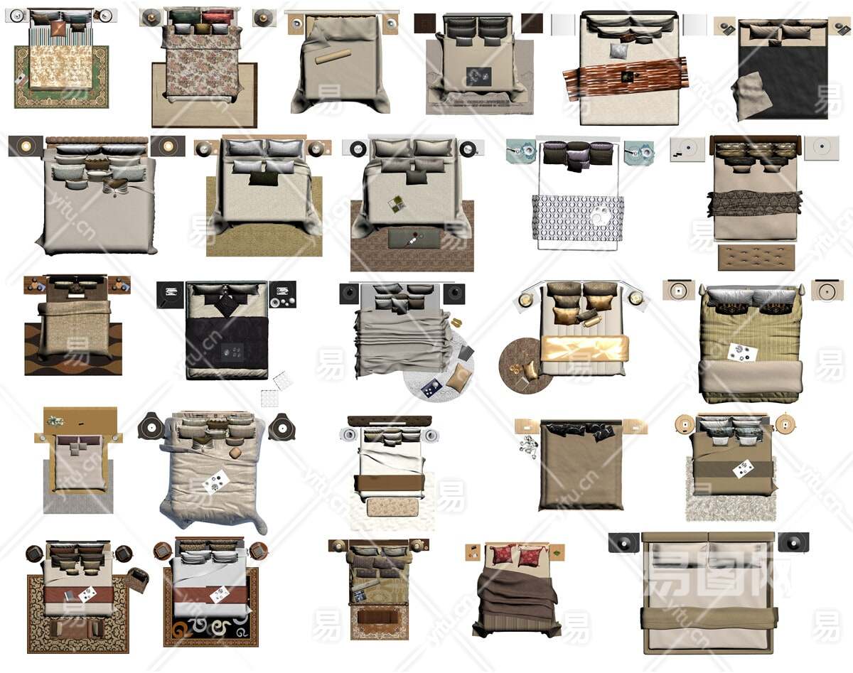 当前的位置:首页 > 贴图 > 免抠素材 > 免抠彩平图 > 【免扣素材】室内平面床家具PSD彩平
