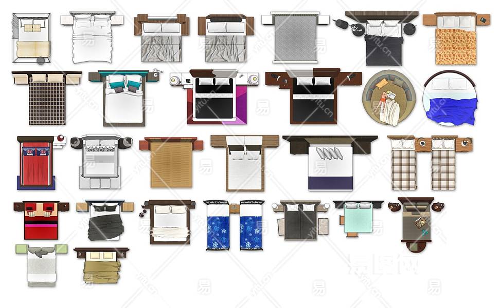 当前的位置:首页 > 贴图 > 免抠素材 > 免抠彩平图 > 【免扣素材】室内平面床家具PSD彩平