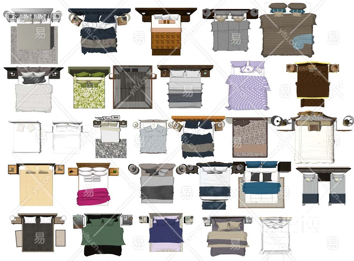 当前的位置:首页 > 贴图 > 免抠素材 > 免抠彩平图 > 【免扣素材】室内平面床家具PSD彩平