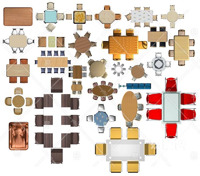 当前的位置:首页 > 贴图 > 免抠素材 > 免抠彩平图 > 【免扣素材】室内平面桌椅家具PSD彩平