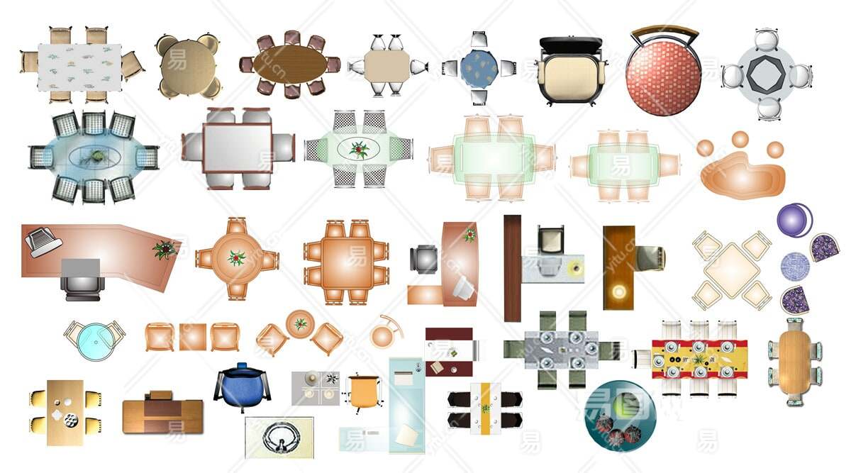 当前的位置:首页 > 贴图 > 免抠素材 > 免抠彩平图 > 【免扣素材】室内平面桌椅家具PSD彩平