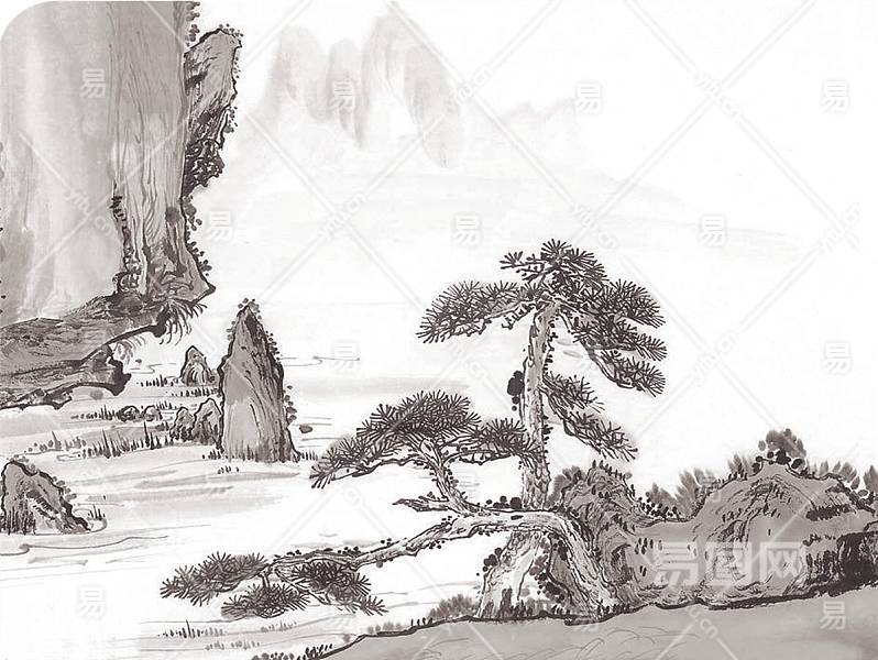 【免扣素材】古风山水背景话免扣PNG素材