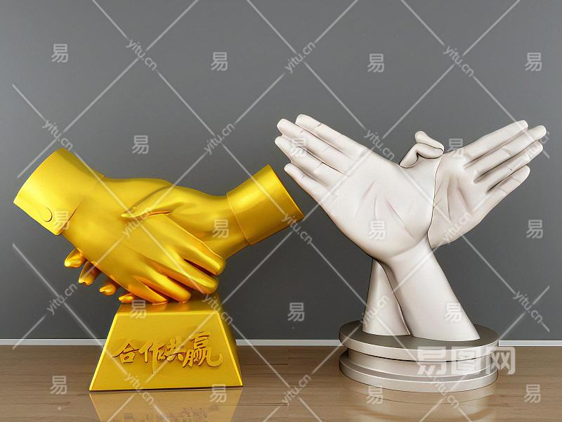 现代握手金属雕塑摆件