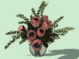 现代玻璃花瓶花卉