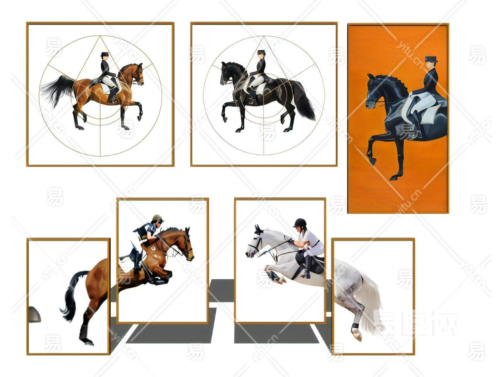 现代马术装饰画组合