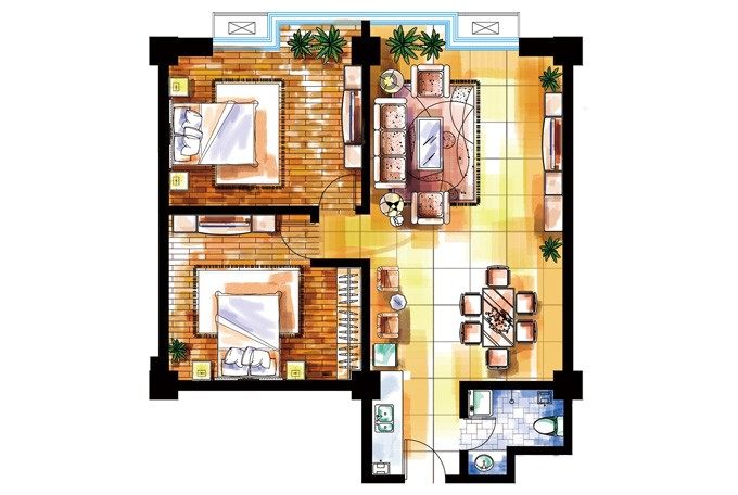 两室一厅室内彩平设计