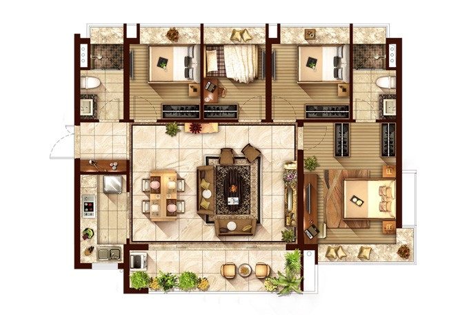 当前的位置:首页 > 效果图 > 家装效果图 > 彩平 > 四室家装平面设计图[模型ID:29633]
